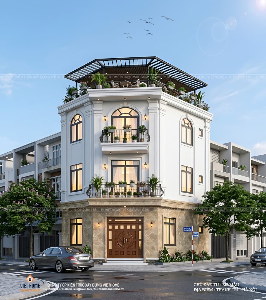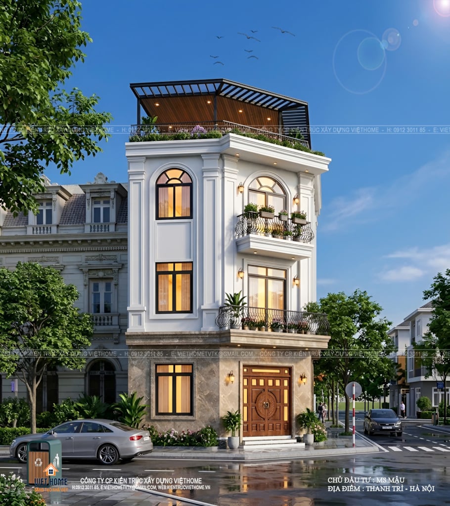 Mẫu Nhà 3 Tầng 1 Tum Hiện Đại Kết Hợp Tân Cổ Điển - Giải Pháp Hoàn Hảo Cho Nhà Phố Góc - CĐT: Ms Mậu - Hà Nội