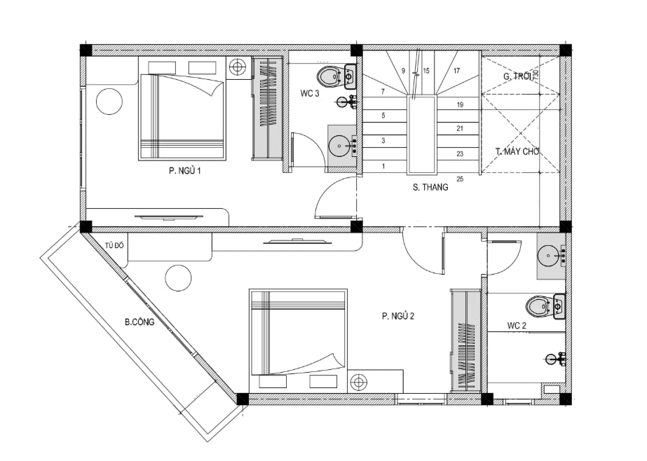+ Tầng 2,3: 2 Phòng ngủ khép kín