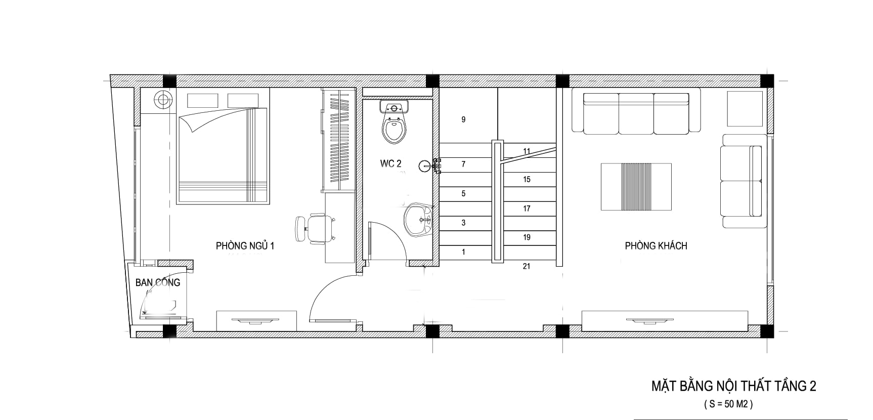 Phòng khách + 1 Phòng ngủ + 1 WC