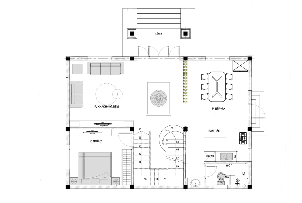 + Tầng 1: Phòng khách + Bếp ăn+ Phòng ngủ + 1 WC