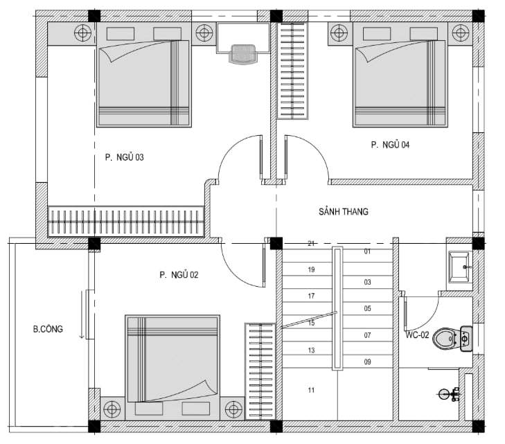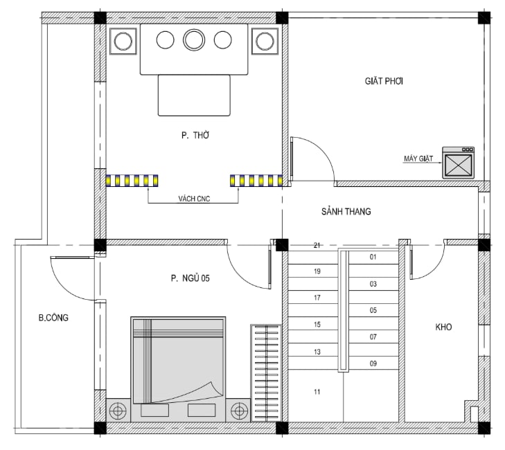 + Tầng 3: Phòng thờ + 1 Phòng ngủ + Sân phơi