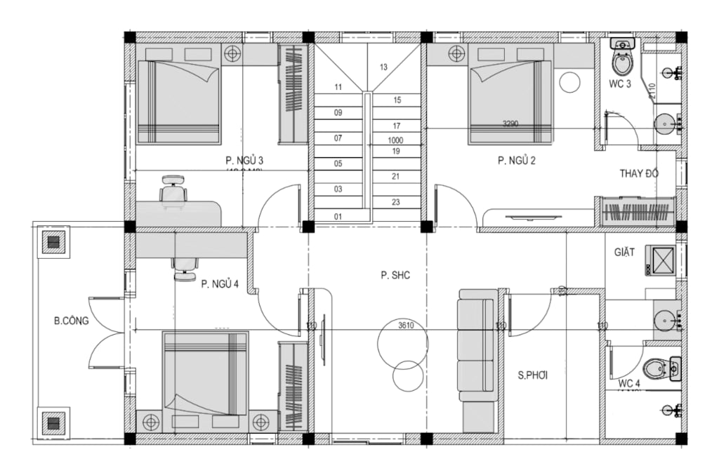 + Tầng 2: PhòngSHC+ 3 Phòng ngủ + 2 WC + Sân phơi