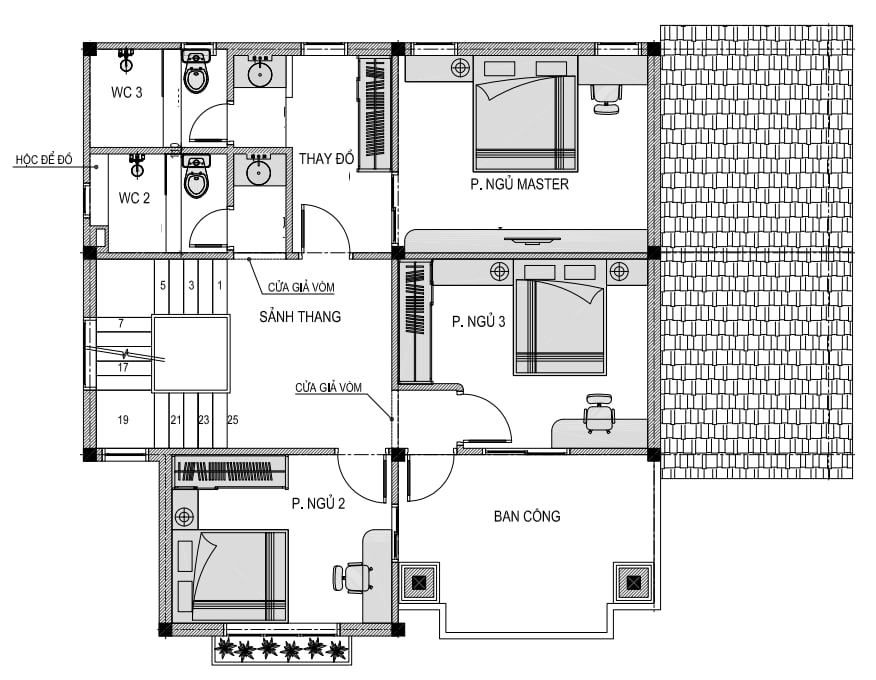 + Tầng 2: 1 Phòng ngủ master + 2 Phòng ngủ thường + 2 WC