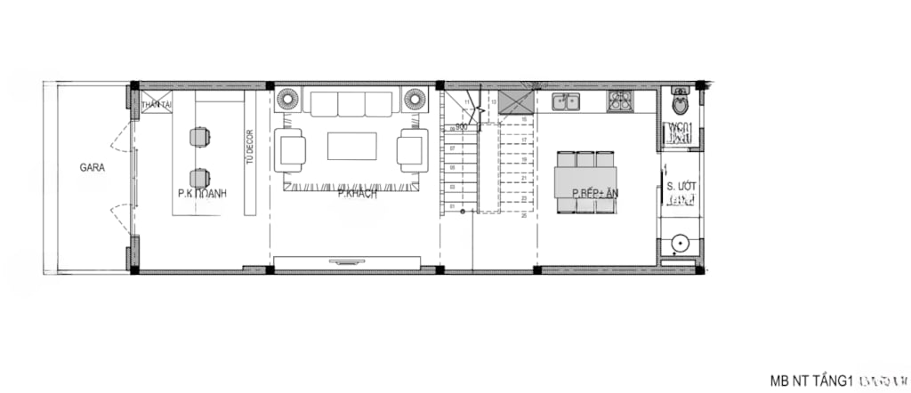 + Tầng 1: Gara, Kinh Doanh , Phòng khách, Phòng Bếp + Ăn, WC.