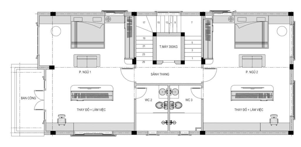 + Tầng 2: 2 Phòng ngủ Master