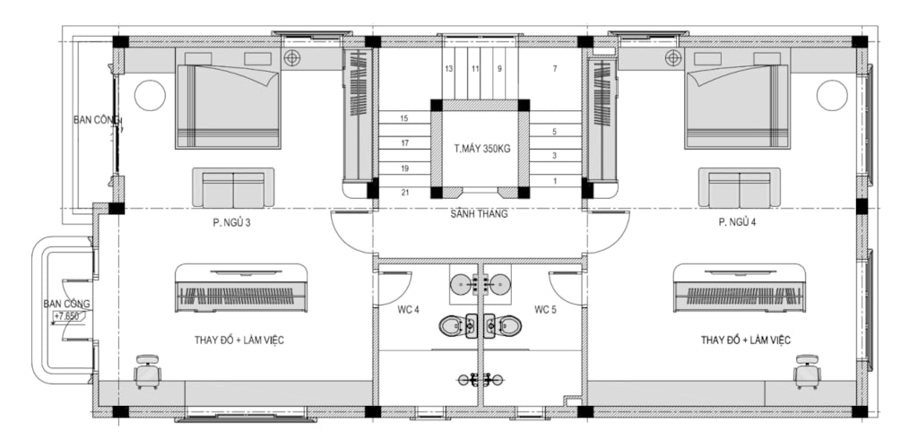 + Tầng 3,4 : 2 Phòng ngủ Master