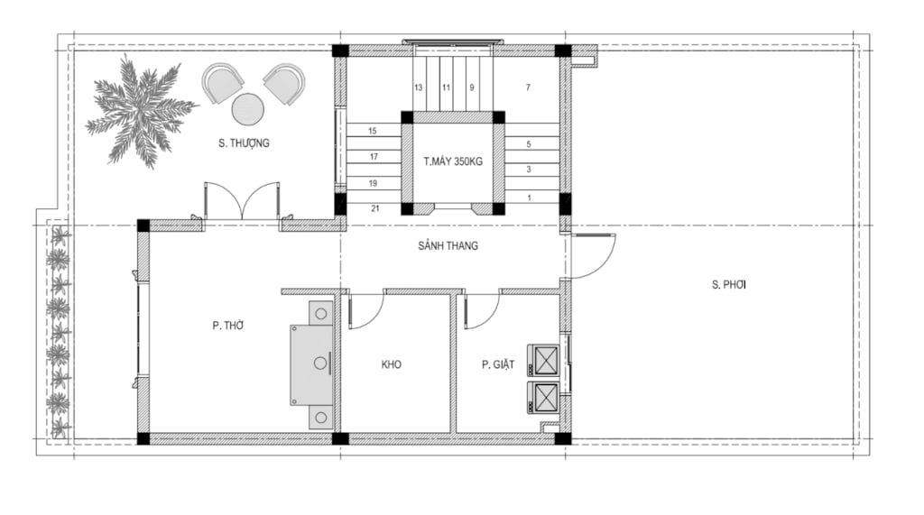 + Tầng tum: Phòng thờ + Sân phơi + kho