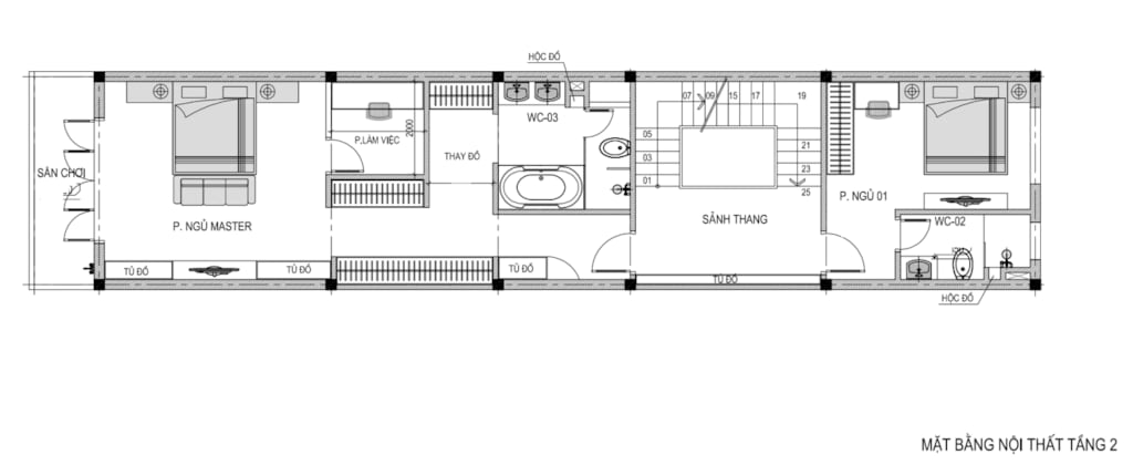 + Tầng 2: Phòng ngủ Master + Phòng ngủ thường + WC