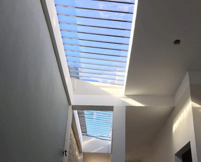 Nên dùng kính cường lực, polycarbonate hoặc mái lấy sáng di động.