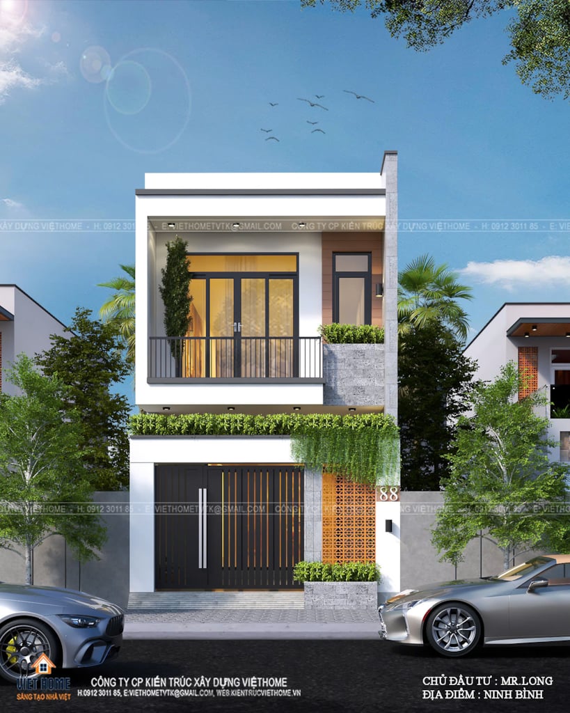 Hiện đại và tiện nghi cùng mẫu nhà phố 2 tầng của chủ đầu tư anh Long ở Ninh Bình