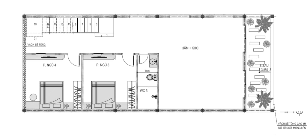 + Tầng hầm: 2 Phòng ngủ + Kho + WC