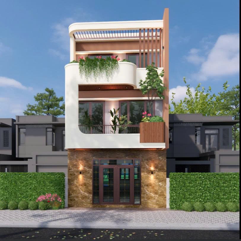 Ngôi nhà mang phong cách hiện đại, sang trọng. Sự phá cách trong thiết kế để mang lại sự khác biệt trong các thiết kế nhà phố đơn điệu. Kết hợp giữa màu tối và màu sáng một cách hợp lý giúp ngôi nhà trong tràn đầy sức sống và trẻ trung. Sử dụng gạch ốp tường để trang trí khiến ngôi nhà trở nên nổi bật giữa khu phố.