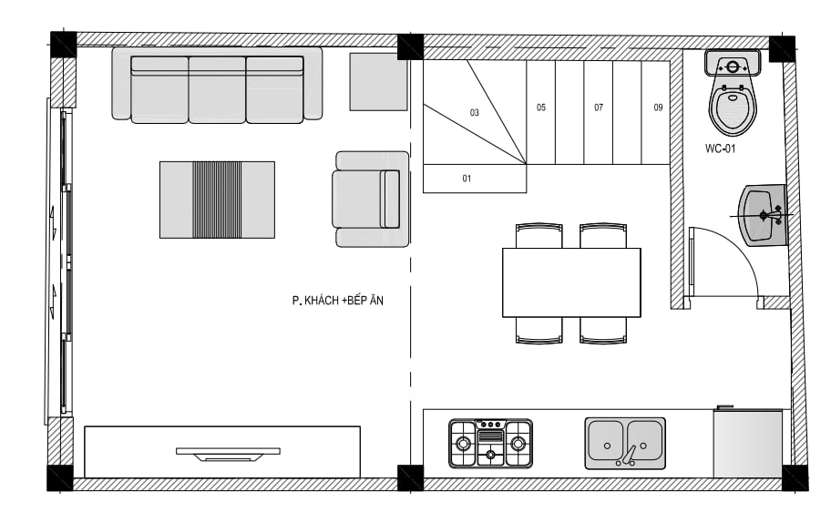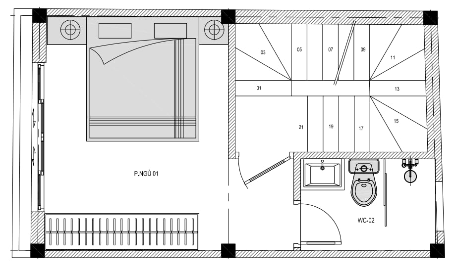 + Tầng 2,3,4: 1 Phòng ngủ khép kín
