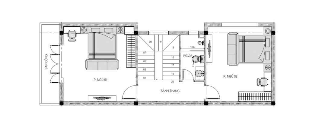 + Tầng 2: 2 Phòng ngủ + WC