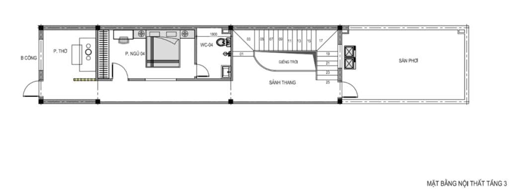+ Tầng 3: Phòng thờ + 1 Phòng ngủ master + Sân phơi