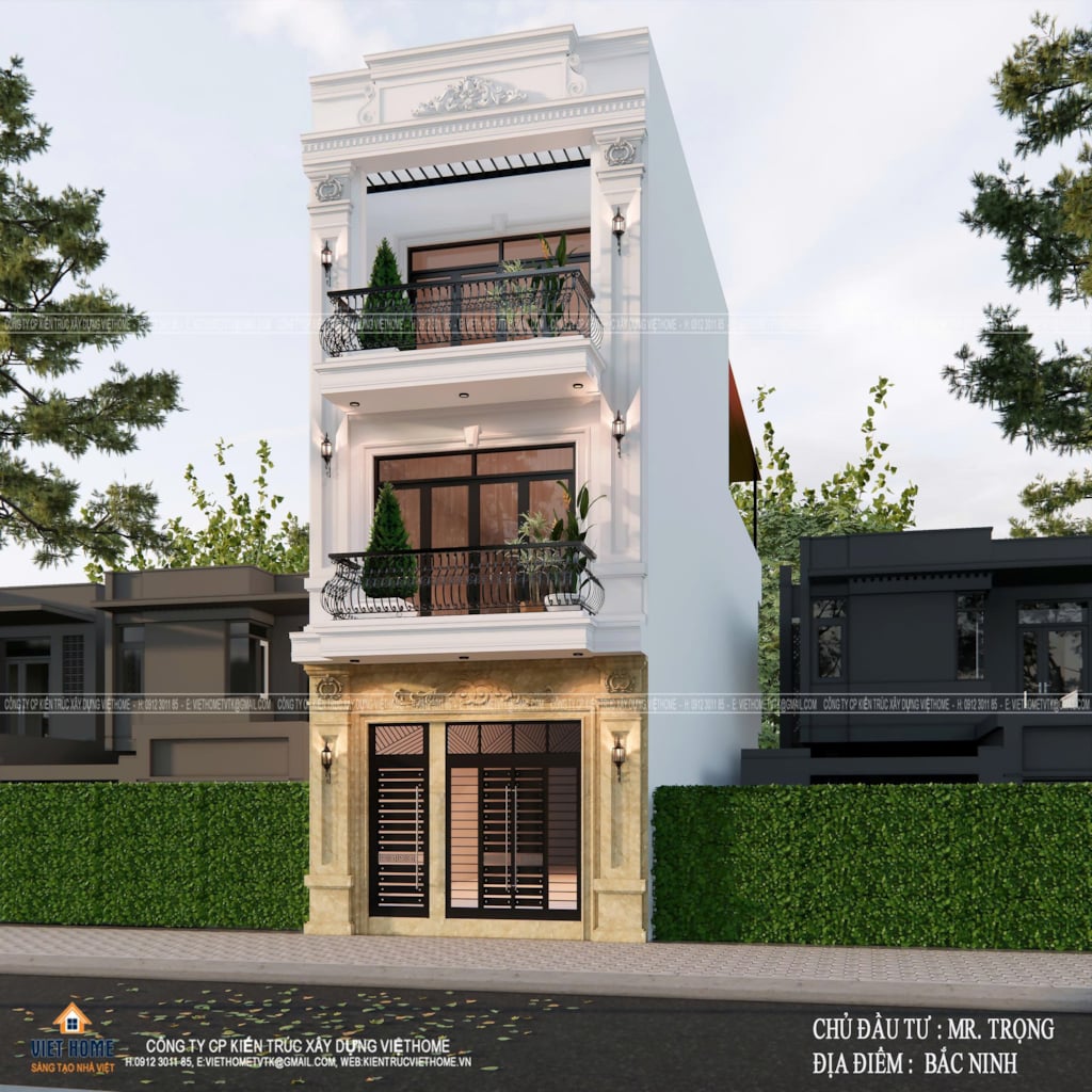 Mẫu nhà phố 3 tầng tân cổ điển đẹp sang trọng tại Bắc Ninh - CĐT: Anh Trọng