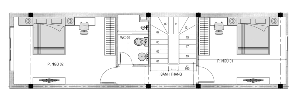 + Tầng 2: 2 Phòng ngủ thường + 1 WC