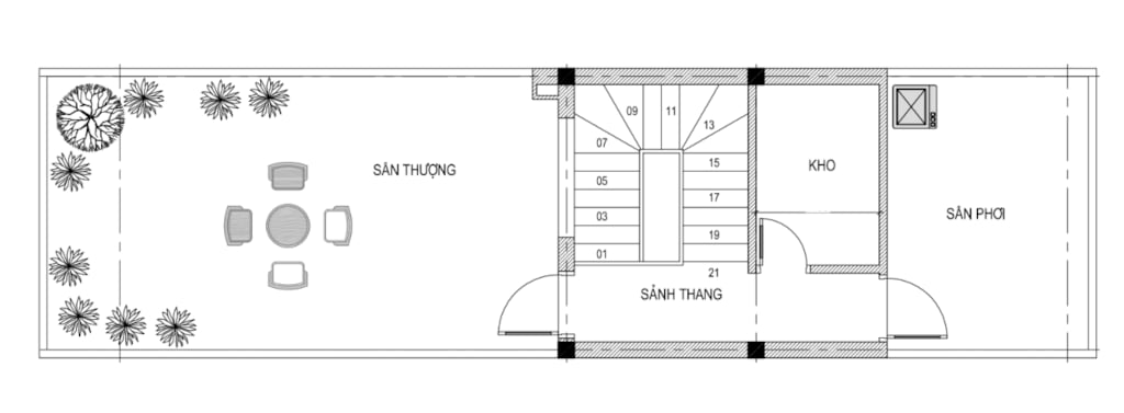 + Tầng tum: Sân thượng + Sân phơi
