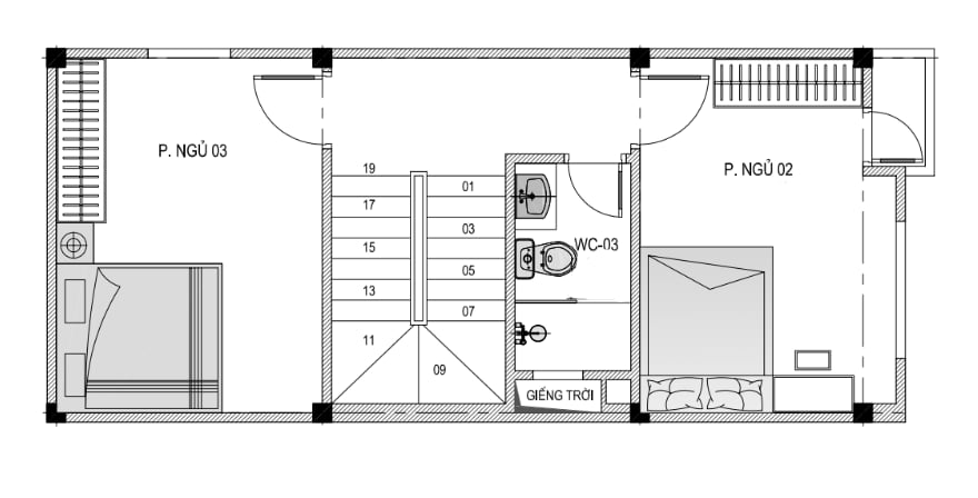 + Tầng 3: 2 Phòng ngủ + WC