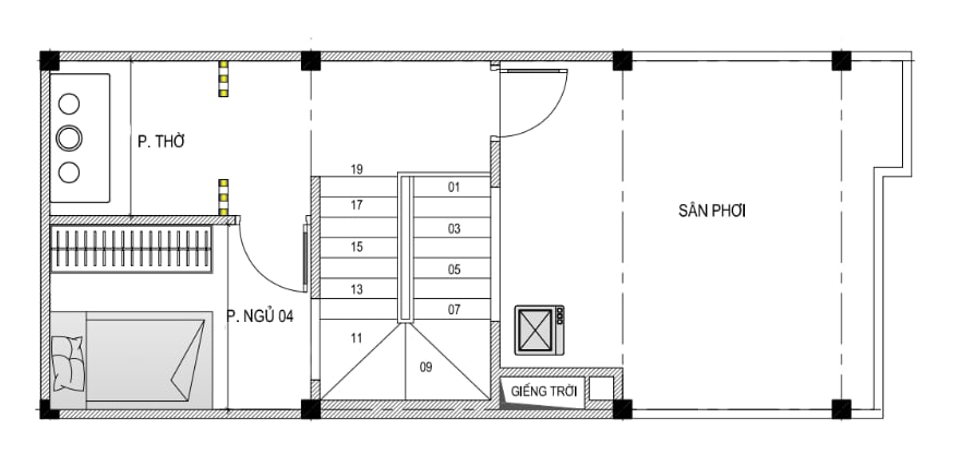 + Tầng 4: phòng thờ + Sân phơi