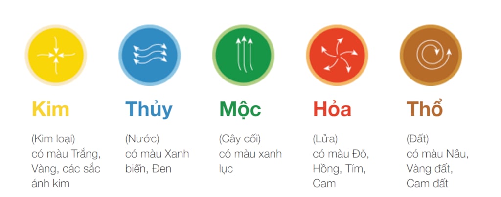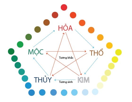 Theo học thuyết Ngũ hành (Kim – Mộc – Thủy – Hỏa – Thổ), mỗi người sinh ra đều mang một bản mệnh riêng. Mỗi bản mệnh sẽ tương sinh với một số màu sắc nhất định và tương khắc với một số màu khác.