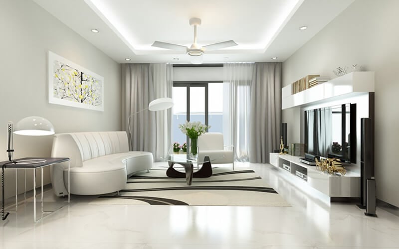 Phòng khách: Trắng – xanh nhạt
