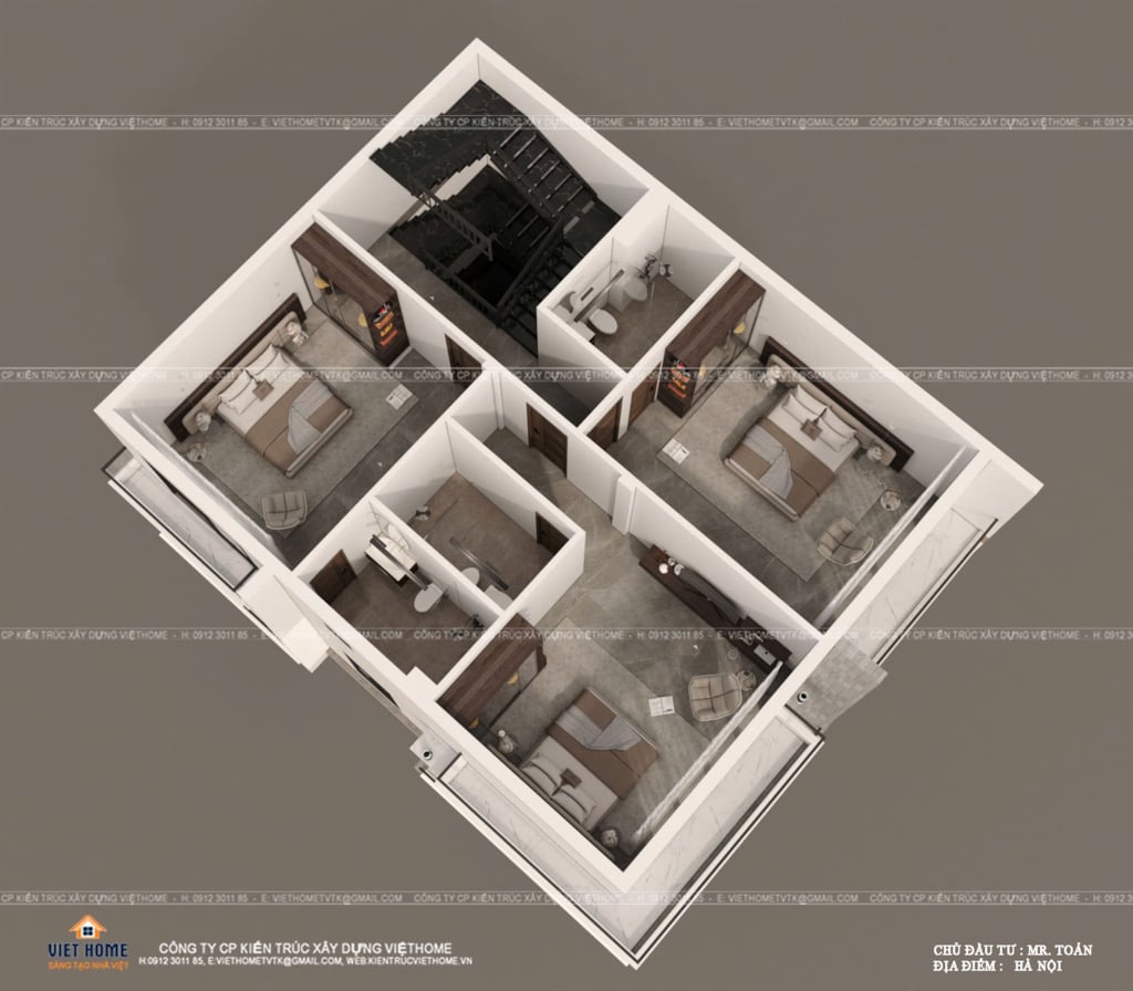 + Tầng 3 : 3 Phòng ngủ khép kín