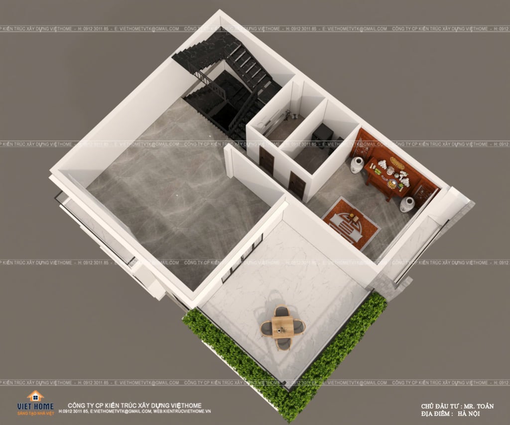 + Tầng 4: Phòng thờ + Phòng ăn + WC + Sân phơi