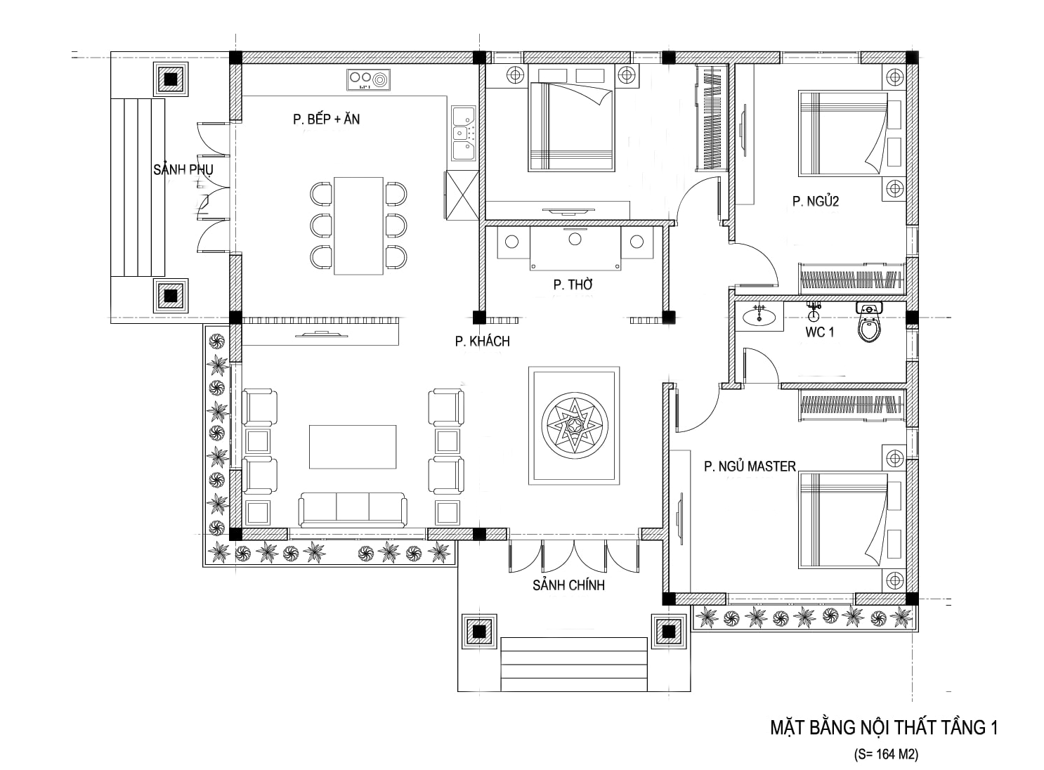 Công năng sử dụng: Phòng khách + Phòng thờ + Bếp + 1 Phòng ngủ Master + 2 Phòng ngủ