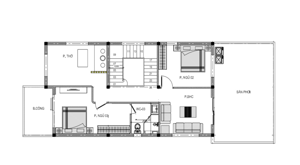 + Tầng 2: Phòng thờ + Phòng SHC + 1 Phòng ngủ khép kín + 1 phòng ngủ thường
