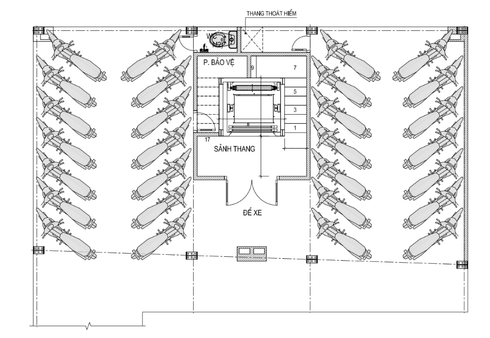 + Tầng 1: Khu vực để xe + 1 Phòng bảo vệ + Vệ sinh