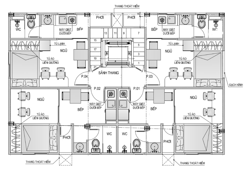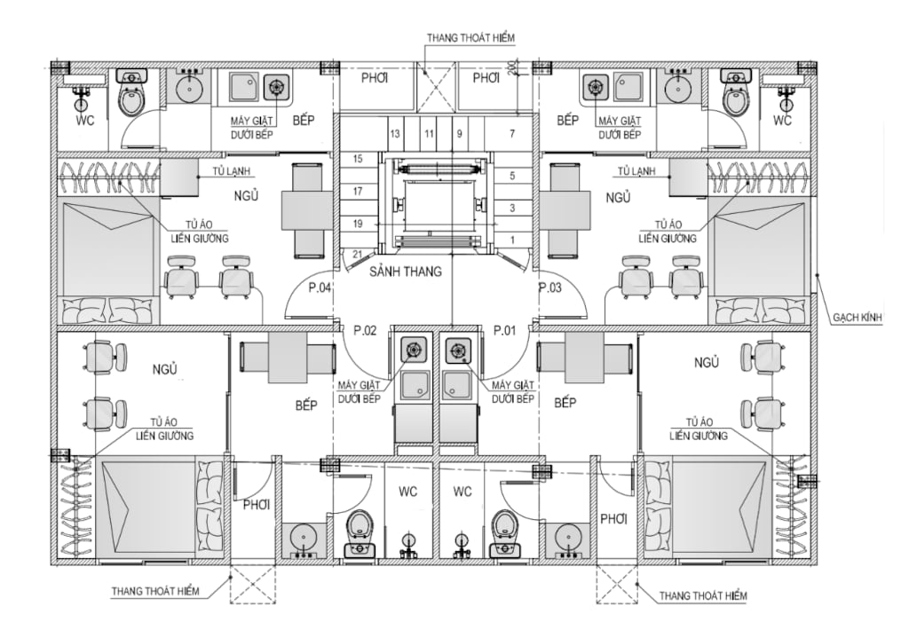 + Tầng 5: 4 căn hộ khép kín 1 phòng ngủ