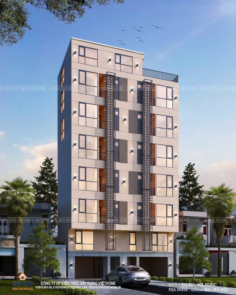 Thiết kế mẫu chung cư mini 5 tầng 1 lửng 1 tum đẹp hiện đại của chủ đầu tư anh Ngọc tại Hà Nội
