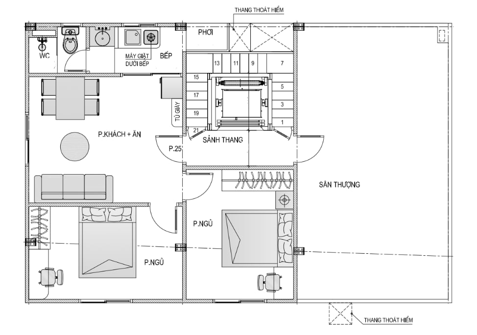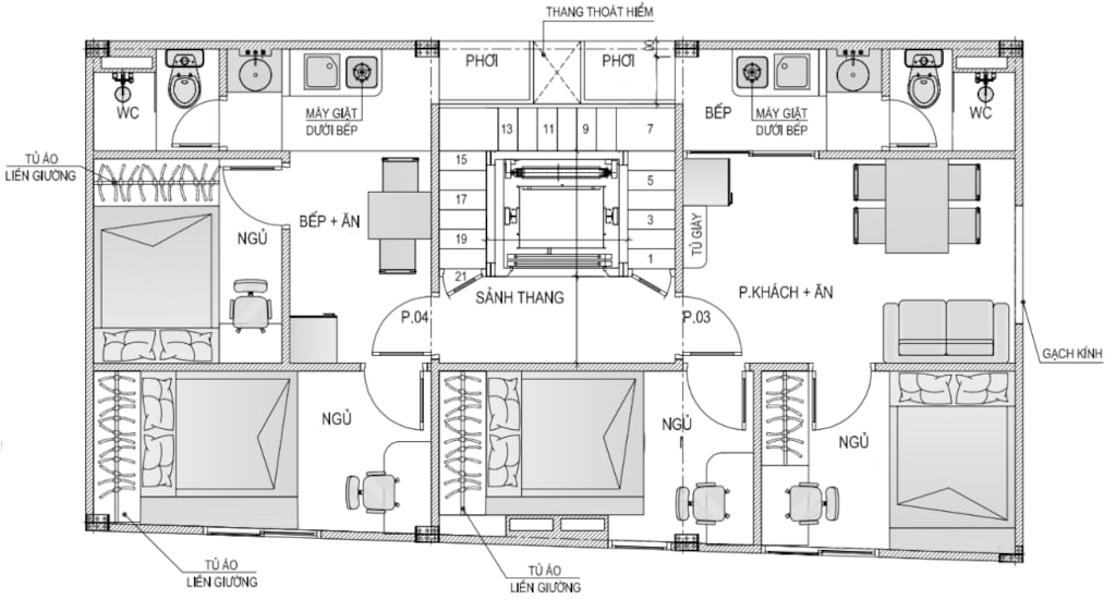 + Tầng lửng: 2 căn hộ khép kín 2 phòng ngủ