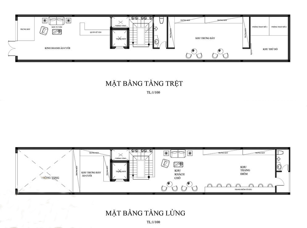 Bố trí công năng tầng trệt và tầng lửng: