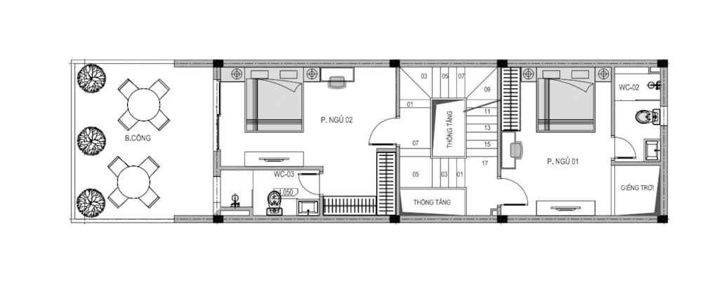 + Tầng 2, 3: 2 Phòng ngủ + WC