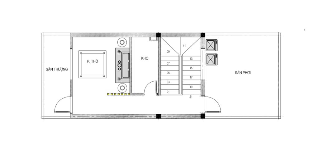 Tầng 4: Phòng thờ + Kho + Sân phơi