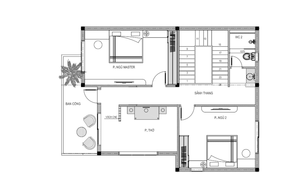 Phòng thờ + 2 Phòng ngủ + 1 WC
