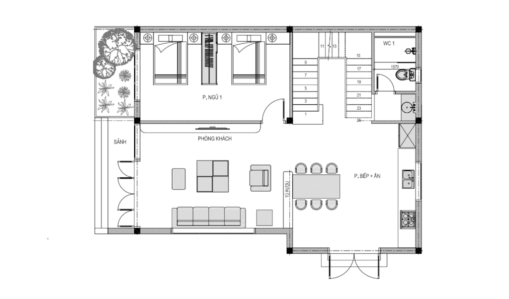2.1. Bố trí công năng tầng 1