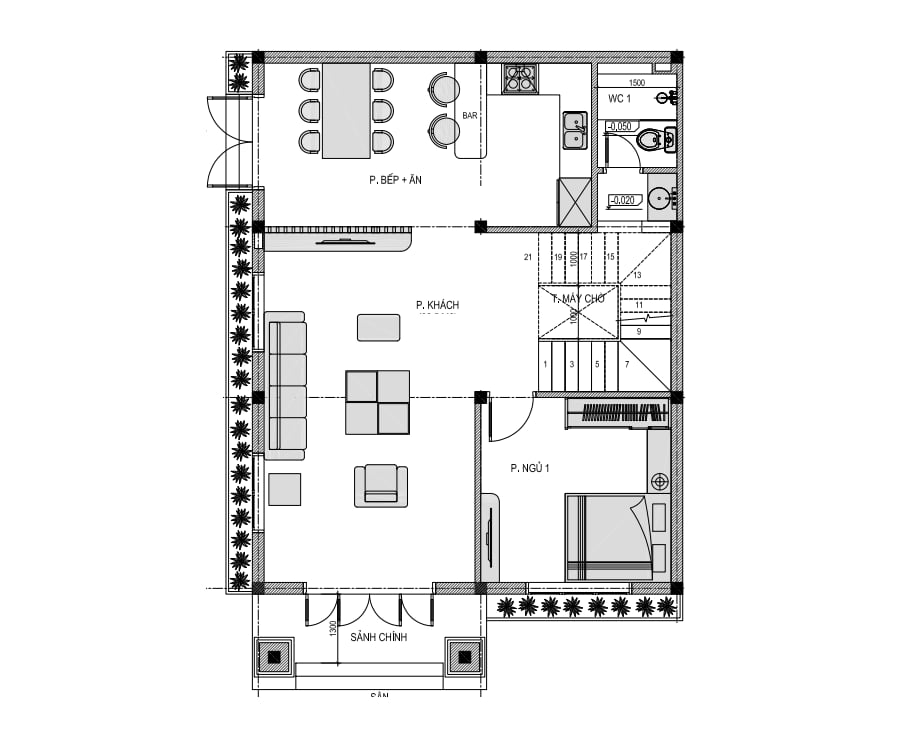 + Tầng 1: Phòng khách + Bếp ăn+ Phòng ngủ + 1 WC