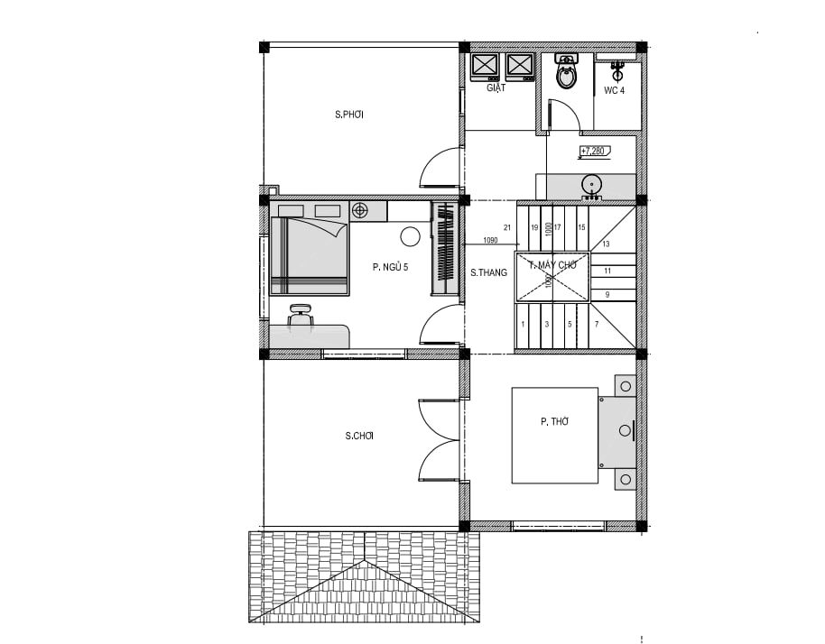 + Tầng 3: Phòng thờ + 1 Phòng ngủ + WC