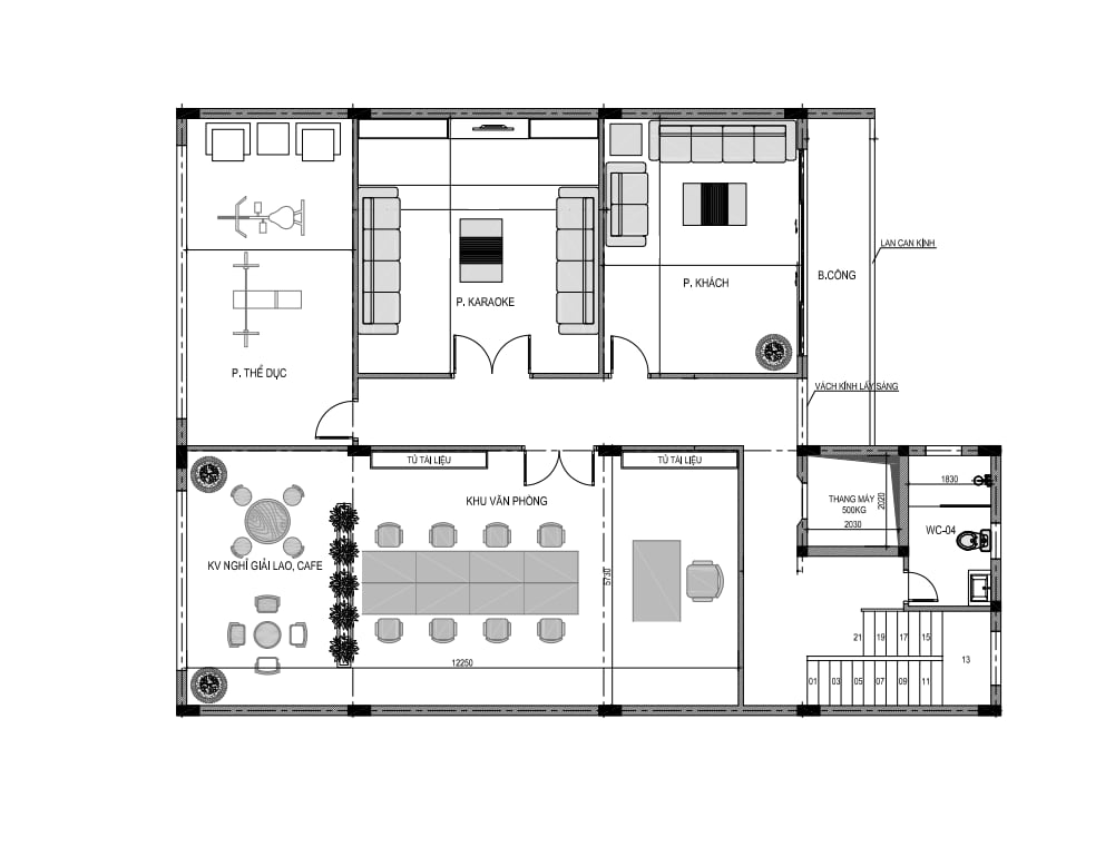 + Tầng 3: Khu văn phòng + Phòng khách + Phòng karaoke + Phòng thể dục + WC