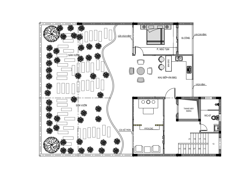 + Tầng 5: Phòng thờ + Khu vực BBQ + 1 Phòng ngủ + Ban công