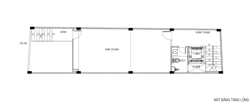+ Tầng lửng: Kinh doanh + WC