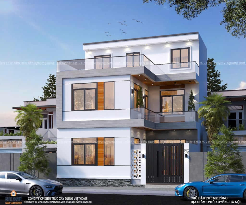 Đẹp hiện đại cùng mẫu thiết kế 2 tầng 1 tum của chủ đầu tư anh Tùng ở Phú Xuyên, Hà Nội