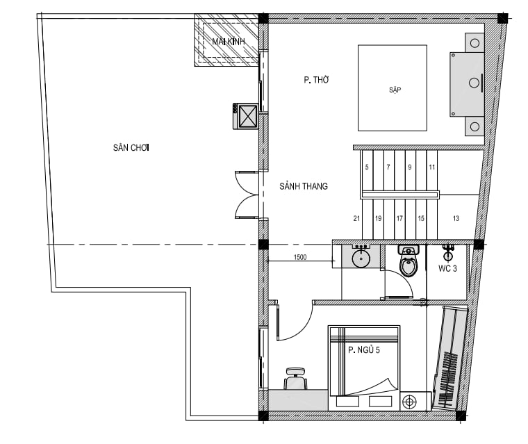 + Tầng tum: Phòng Thờ + Phòng ngủ + WC