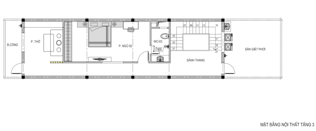 + Tầng 3: Phòng thờ + phòng ngủ + WC + Sân phơi