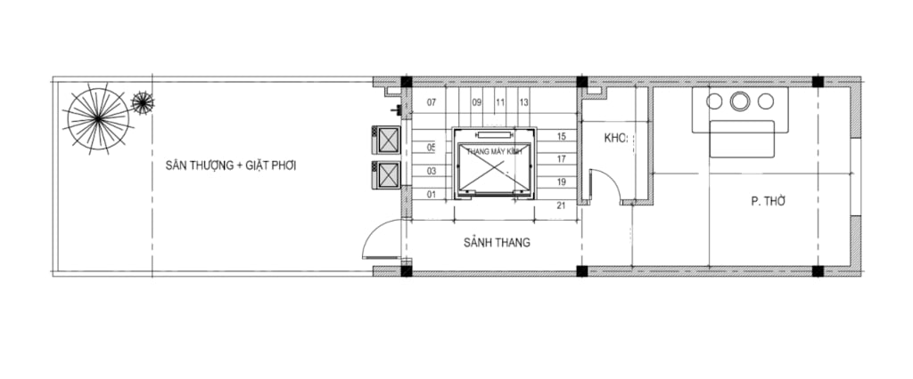 + Tầng 4: Phòng thờ + Sân thượng, Sân phơi + kho