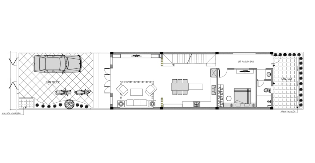 + Tầng 1: Phòng khách + Bếp ăn + phòng ngủ khép kín