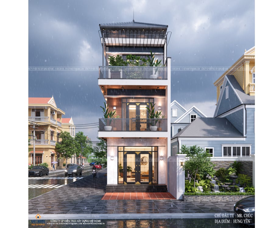 Tổng thể công trình không chỉ đảm bảo tính thẩm mỹ mà còn tối ưu công năng sử dụng, mang đến một không gian sống thoáng đãng, tiện nghi và phù hợp với xu hướng nhà phố hiện nay.